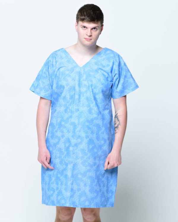 open heart surgery, tracheostomy, mastectomy, colostomy bag, and bariatric patients. Sleeves opening with velcros for IV line accessibility, front heart monitor pocket.